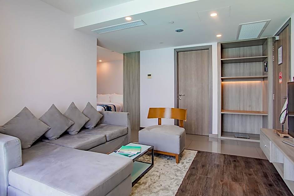 Designed to separate the bedroom and living area, the room offers plenty of space for your belongings with room to spare. Indulge in its scenic views with every step you take.